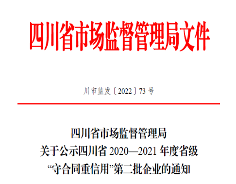 ?四川省2020-2021年度“守合同重信用企業(yè)”公示名單