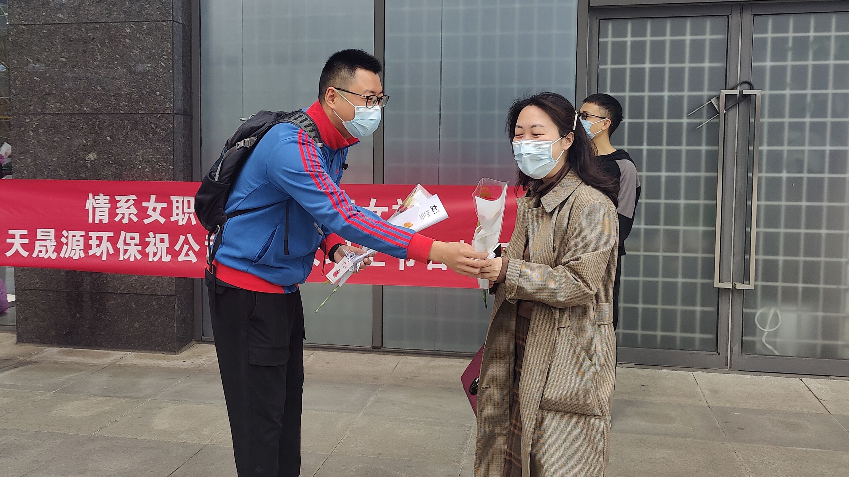 (天晟源環(huán)保工會主席姚夢為女職工獻花)