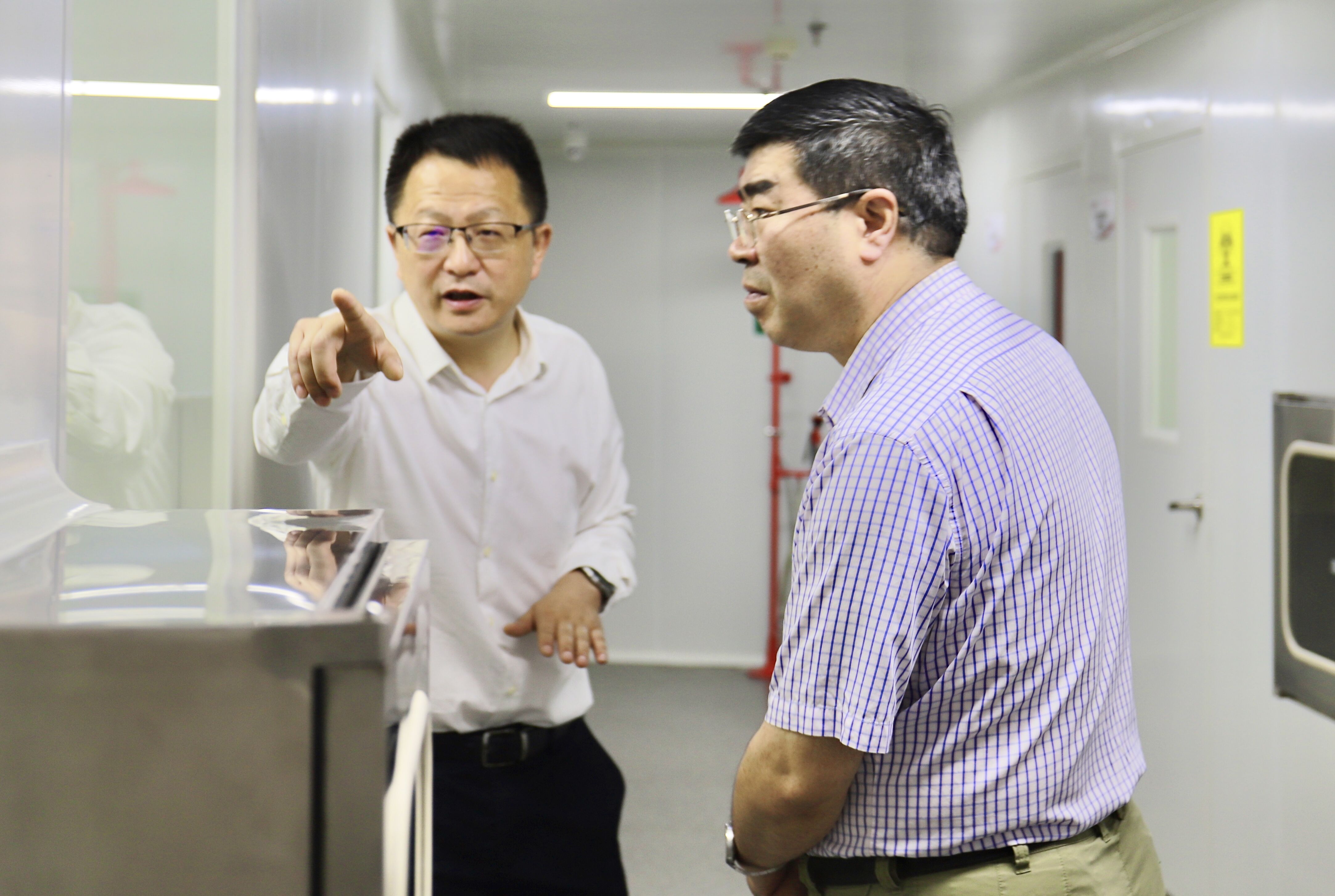 (劉健仔細查看實驗室生產(chǎn)情況)