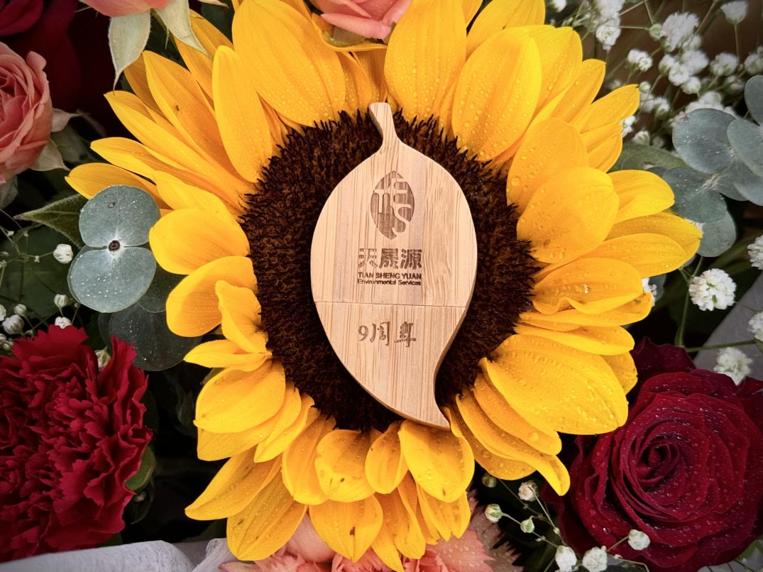 9月30日,天晟源環(huán)保向員工贈送木質“樹葉”造型的九周年紀念U盤,代表了天晟源環(huán)保生機勃勃的活力,也同時公司將如同青枝綠葉般蓬勃向上,在未來不斷發(fā)展壯大、枝繁葉茂。